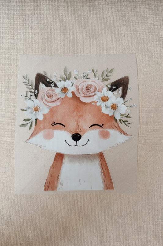 Bügelbild Fuchs mit Blumenkranz